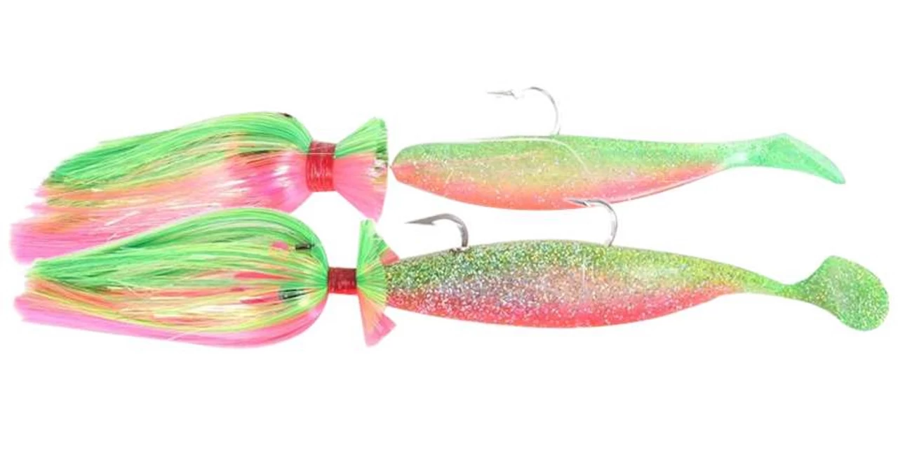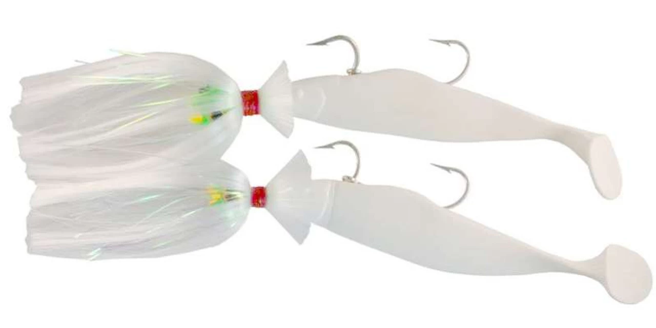 Blue Water Candy Loaded Tandem Parachute Rigs feature a 1/0 3-way swivel with a 14′ and a 4′ 100# mono leader attaching to coastlock swivels. Pre-rigged with parachutes and shads, ready to fish!