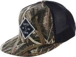 The Salty Crew Tippet Trucker Hat is your classic high quality trucker hat with 5 panel structuring wool blend and classic snap back. This hat features a flat brim and sewn down logo patch.