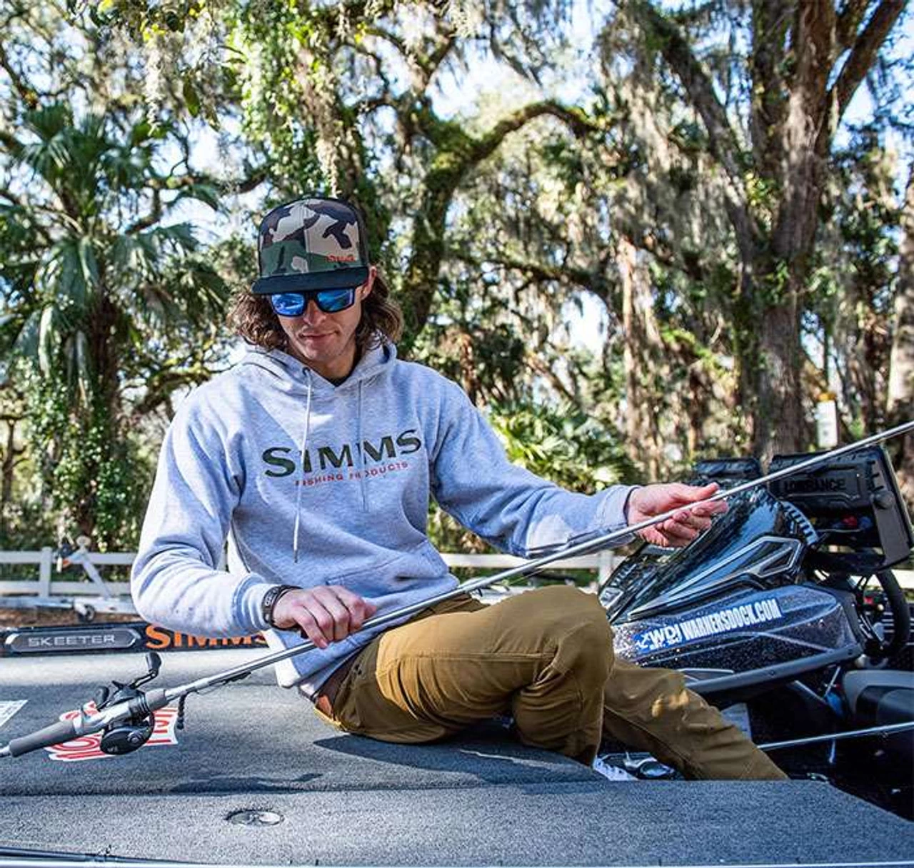 Represent one of the best brands in fishing apparel with this logo hoody by Simms. It’s a pullover sweatshirt to grab on your way out the door to go fishing. Made with 52% cotton/48% polyester materials and Simms camo logo printed across the front.