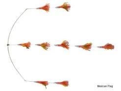 This Tournament Quality Feather Spreader Bar has 9 Sportfish Trolling Feathers in a 2-5-2 pattern. Rigged and ready to catch on 32″ Stainless Bar. Tuna, Marlin, Sailfish, Wahoo, Mahi and other Pelagics cannot resist the action of this bar. Rigged with 200Lb mono and 9/0 Hook. This is a GREAT Inshore Bluefin bar! All of our Spreader Bars include a High Quality Bag. You won’t find a nicer bar and bag for the money ANYWHERE! Our bars will raise fish and won’t break the bank!