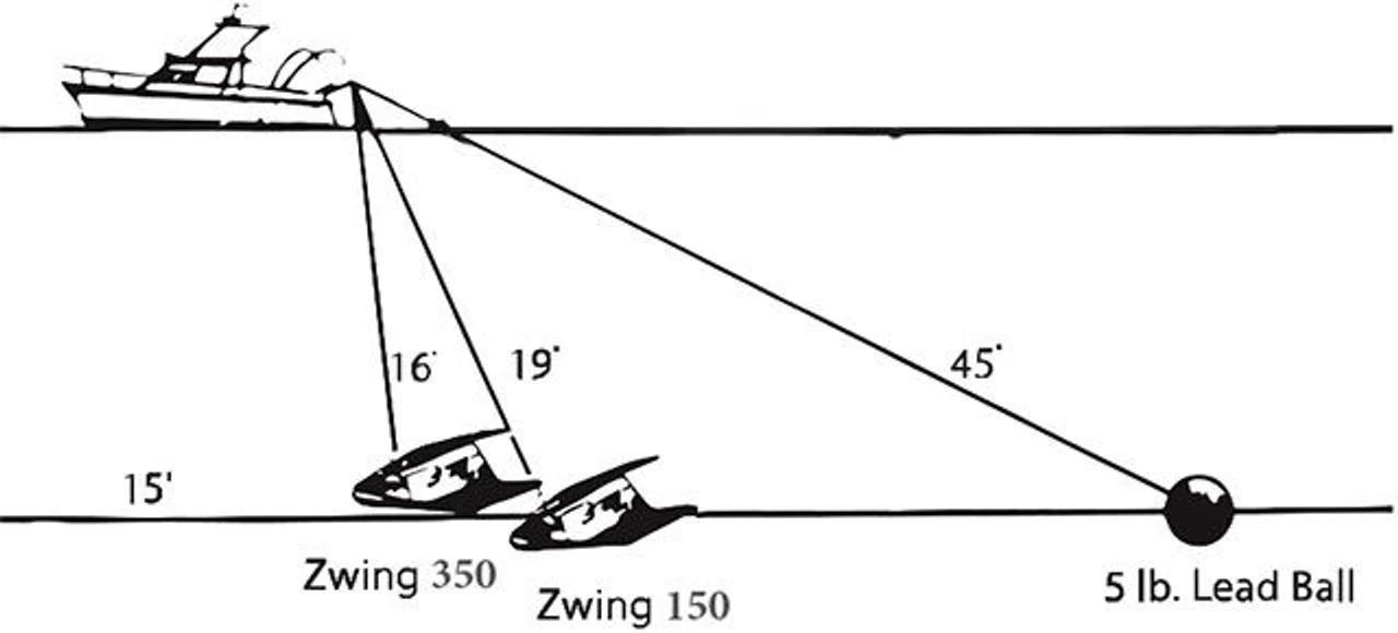 The Zwing downrigger offers a great alternative to the traditional lead ball. Operating on the principle of hydrodynamic depression, rather than weight, the Zwing offers boat captains and anglers the ability to troll lures and baits over a range of speeds without complicated adjustments to the tow cord lengths. The design puts you in control of depth and lateral location. Unlike any other weighted planer the Zwing’s unique design creates an underwater vibration similar to that of injured or schooling baitfish. The Zwing is made from, lightweight, virtually indestructible, polypropylene plastic and can be customized to track in any direction away from your boat.